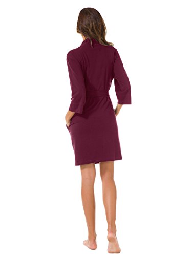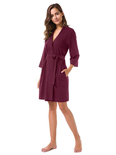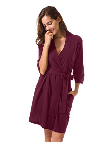 SIORO Women's Kimono Robe Cotton Soft Lightweight Robes Short Knit Bathrobe Loungewear V-Neck Sexy Sleepwear Ladies Nightshirts Burgundy M