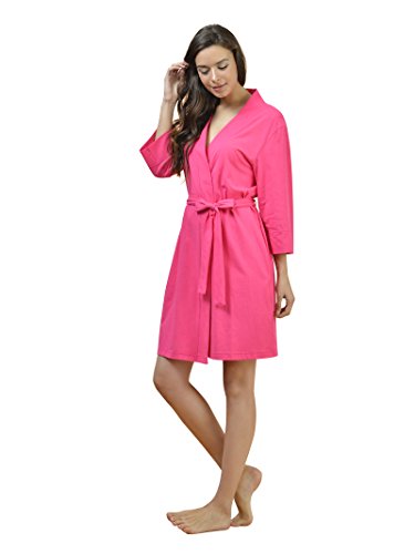 SIORO Cotton Robes Lightweight Kimono Robe Gowns Soft Knit Bathrobe Nightwear V-Neck Loungewear Sexy Sleepwear Short for Women, Fuchsia, S