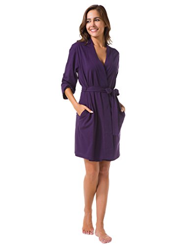 SIORO Women's Kimono Robe Cotton Soft Lightweight Robes Short Knit Bathrobe Loungewear V-Neck Sexy Sleepwear Ladies Nightshirts, Eggplant, M