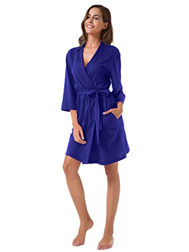 SIORO Women's Kimono Robe Cotton Soft Lightweight Robes Short Knit Bathrobe Loungewear V-Neck Sexy Sleepwear Ladies Nightshirts Royal Blue M