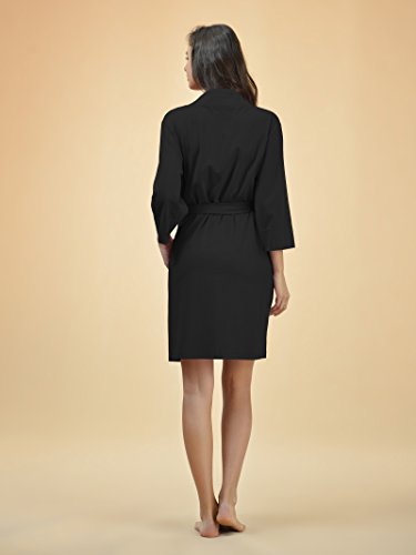 SIORO Women's Kimono Robe Cotton Soft Lightweight Robes Short Knit Bathrobe Loungewear V-Neck Sexy Sleepwear Ladies Nightshirts, Black, L