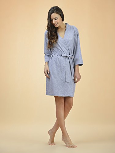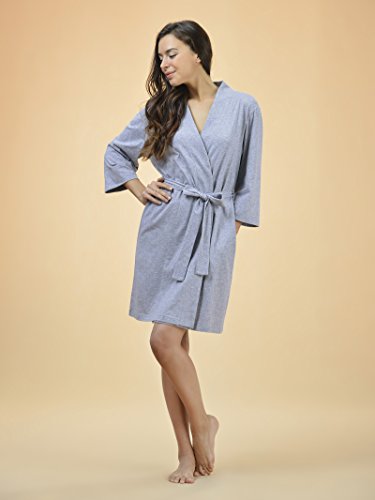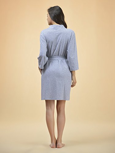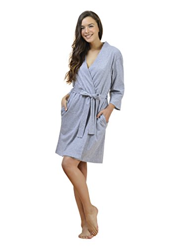 SIORO Women's Kimono Robe Cotton Soft Lightweight Robes Short Knit Bathrobe Loungewear V-Neck Sexy Sleepwear Ladies Nightshirts, Gray, M