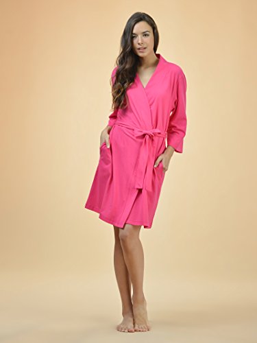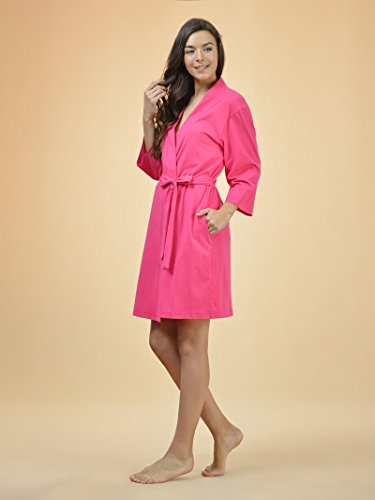 SIORO Cotton Robes Lightweight Kimono Robe Gowns Soft Knit Bathrobe Nightwear V-Neck Loungewear Sexy Sleepwear Short for Women, Fuchsia, M