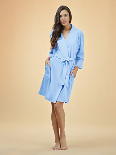 SIORO Women's Kimono Robe Cotton Soft Lightweight Robes Short Knit Bathrobe Loungewear V-Neck Sexy Sleepwear Ladies Nightshirts, Carolina Blue, M