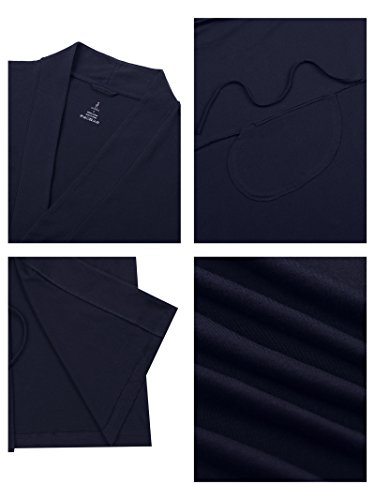 SIORO Women's Kimono Robe Cotton Soft Lightweight Robes Short Knit Bathrobe Loungewear V-Neck Sexy Sleepwear Ladies Nightshirts Navy L