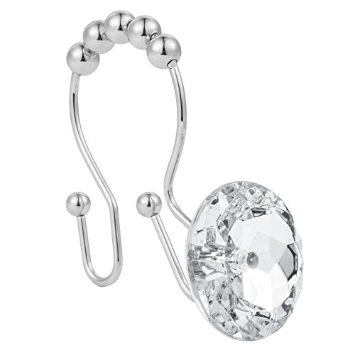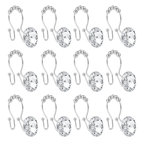 Stainless Steel Rust Resistant Double Hooks Glide Shower Ring Hangs For Both Shower Curtain and Liner 12-Pack (crystal white)