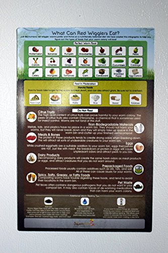 "What Can Red Wigglers Eat?" Infographic Refrigerator Magnet for Live Red Wiggler Worm Composting Bins - An Essential Accessory to Any Worm Farm Starter Kit - Perfect For Kids & Adults