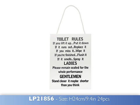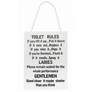 Wooden Funny Plaque Sign Toilet Rules Bathroom