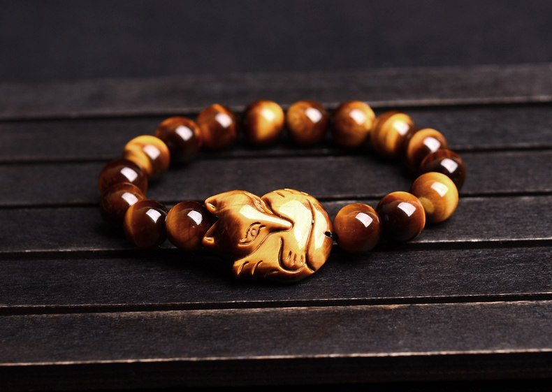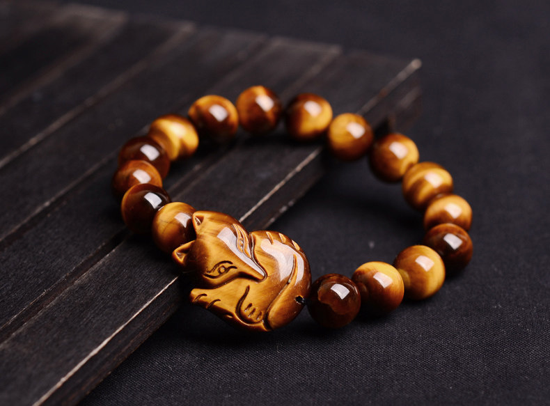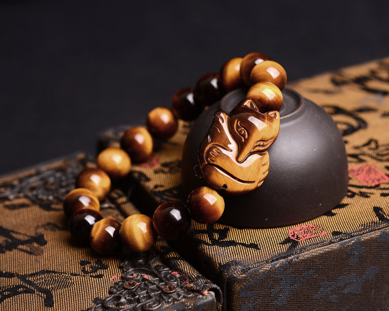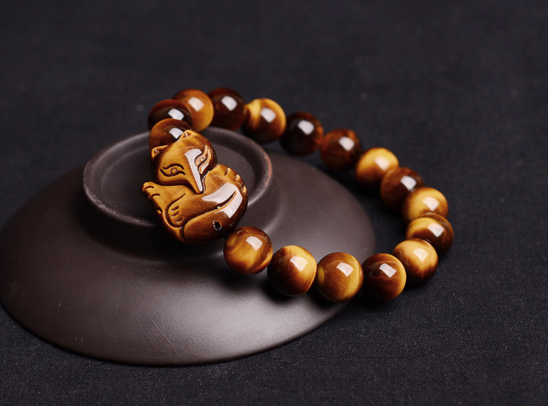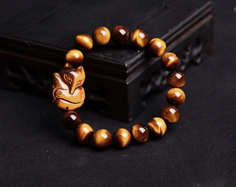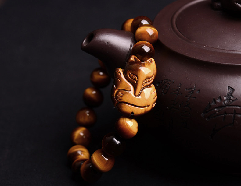 【商品名称】天然虎眼石增合小狐狸手链 增缘和合黑狐佳缘灵狐手链