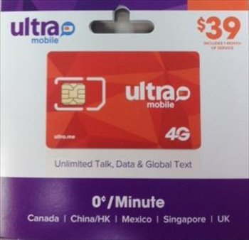 -. Title : Ultra Mobile Sim Card Preloaded with $39 Unlimited Talk, Text, Data, and International Text(T-mobile Network) Plan Red Sim 1000 Free International Minutes