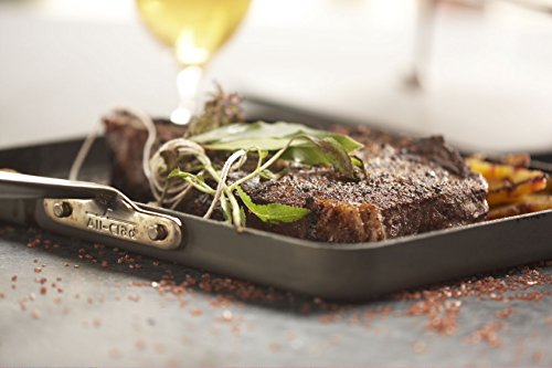 The All-Clad HA1 Hard Anodized E7959664 10 In. Panini Pan is made of hard-anodized aluminum featuring an easy-release nonstick interior. Preheat both pieces on the stovetop together, and then cook your sandwich between the two elements for a crispy Panini. Stainless steel handles are securely riveted for safe usage. Ridged base and weighted press add a grilled effect to your favorite foods. It can also be used without the press as a grill pan. With HA1 Hard Anodized cookware, you can experience the renowned quality of All-Clad and the ultimate convenience of nonstick. The All-Clad cookware's three layers of PFOA-free nonstick coating ensure effortless food release and make cleanup a breeze. Even more, Hard Anodized nonstick cookware offers dishwasher-safe convenience, induction compatibility, and warp-resistant strength. Discover what it means to cook with All-Clad.Feature