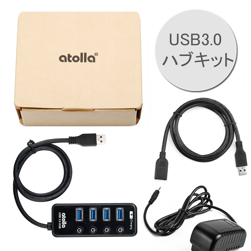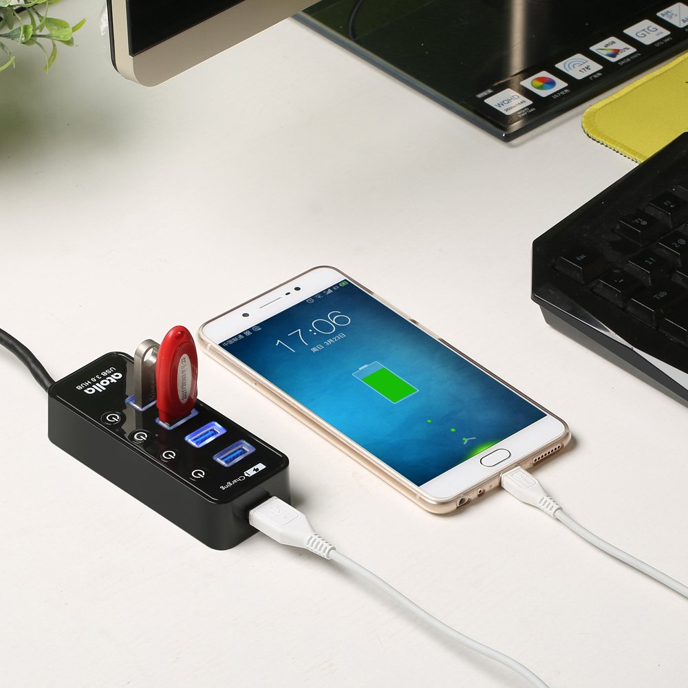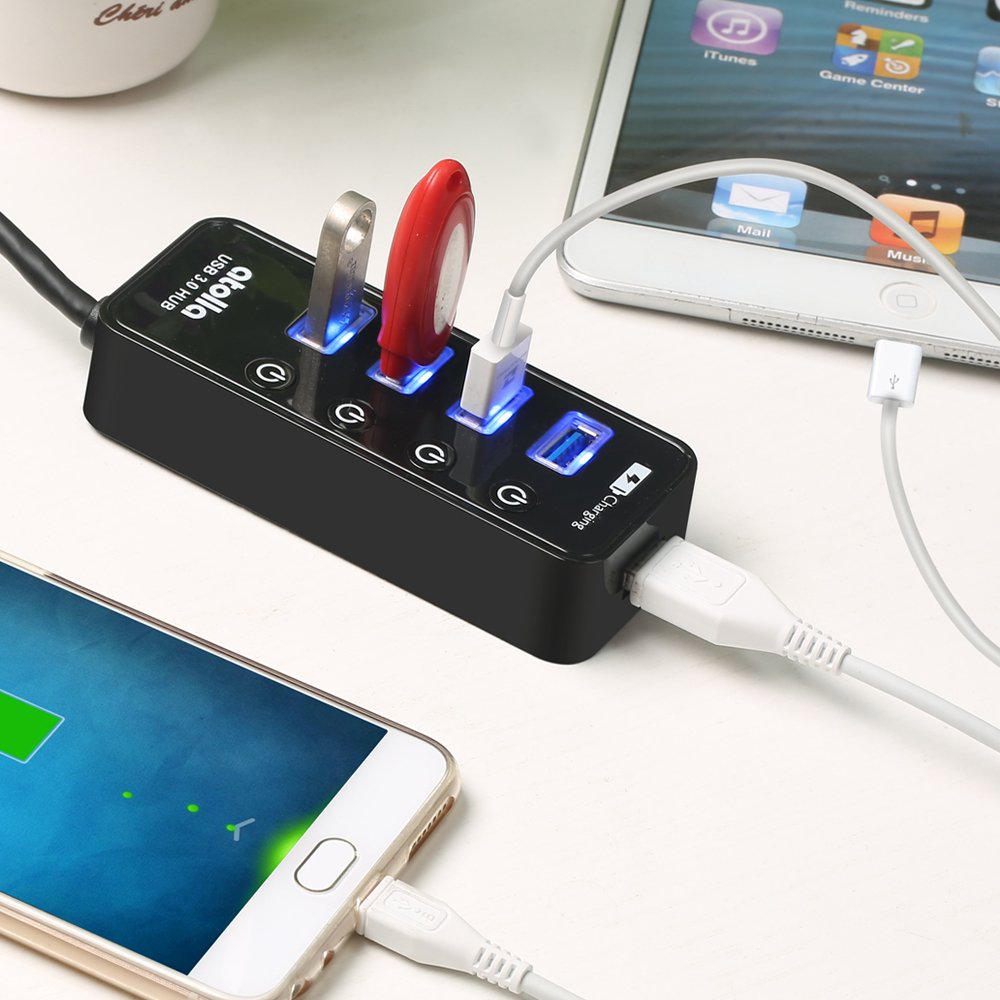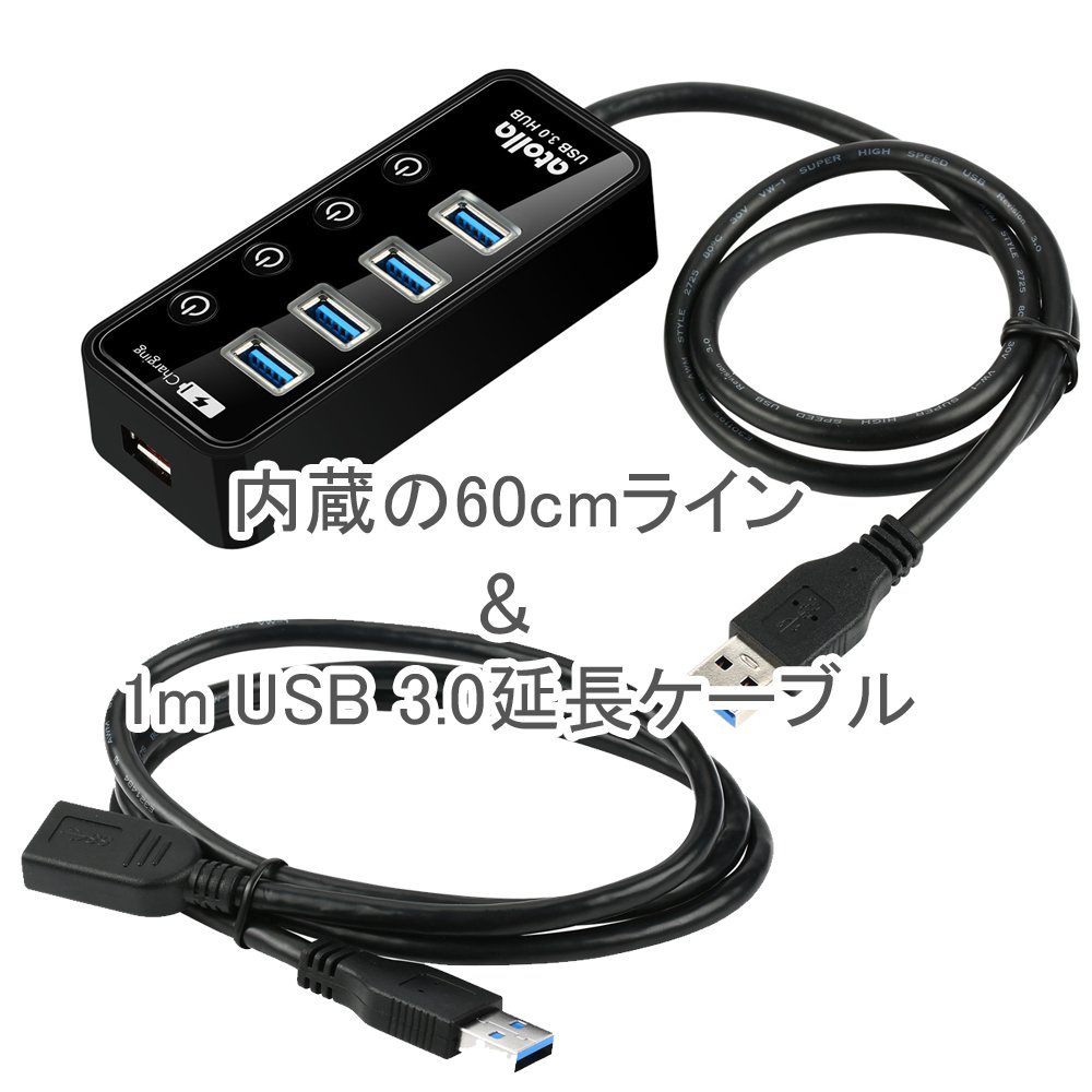 USB 3.0 Hub kit (self power, with power switch, 4 ports + 2.4 A charge port x 1, 1 m USB 3.0 extension cable)
