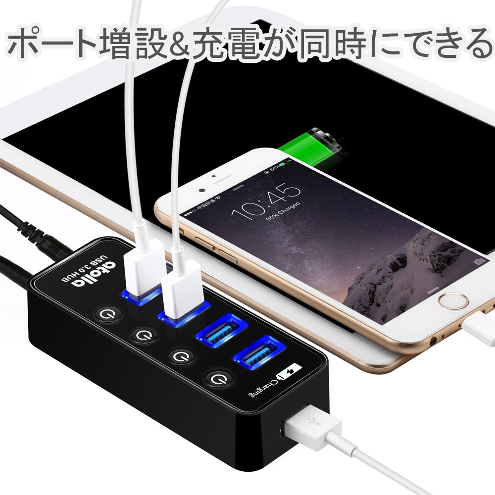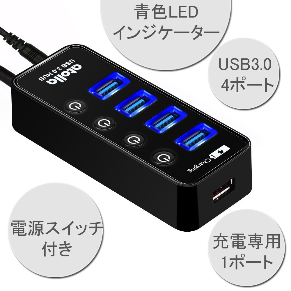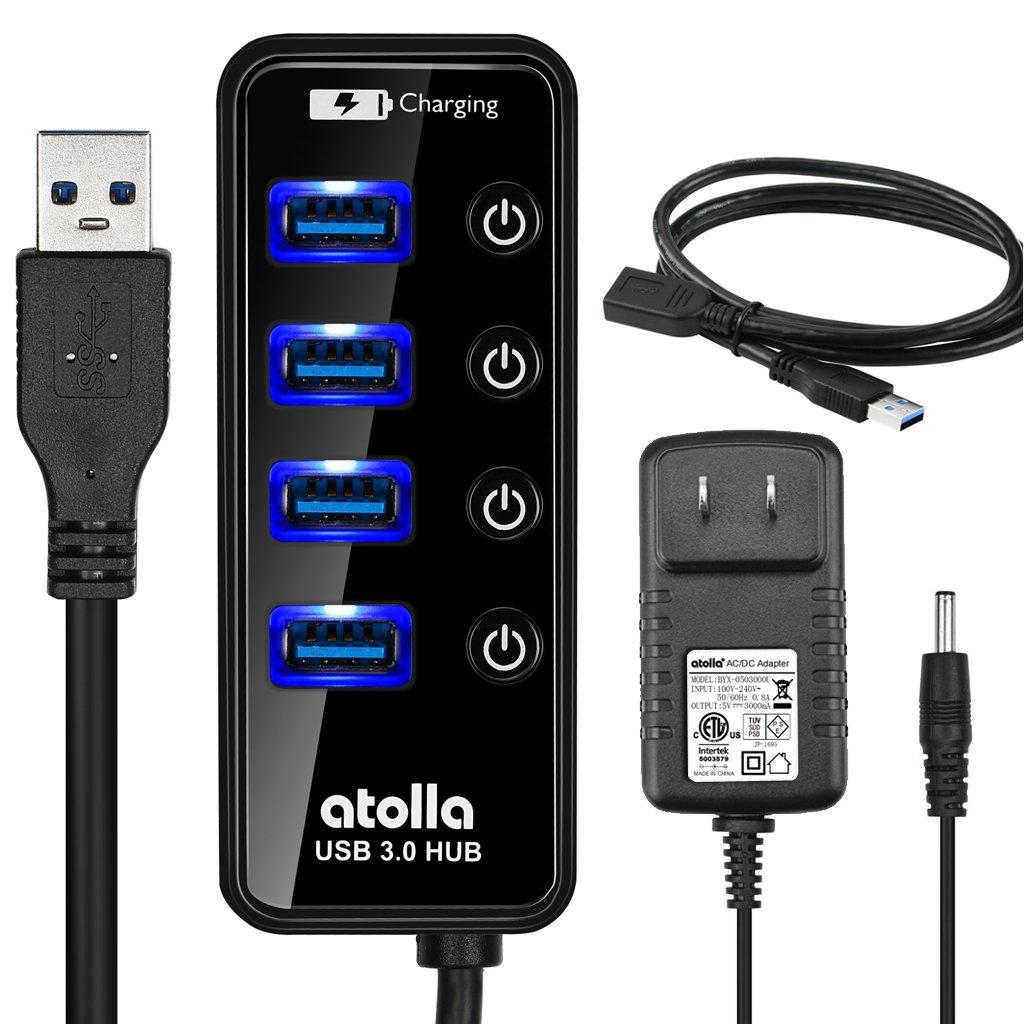 USB 3.0 Hub kit (self power, with power switch, 4 ports + 2.4 A charge port x 1, 1 m USB 3.0 extension cable)
