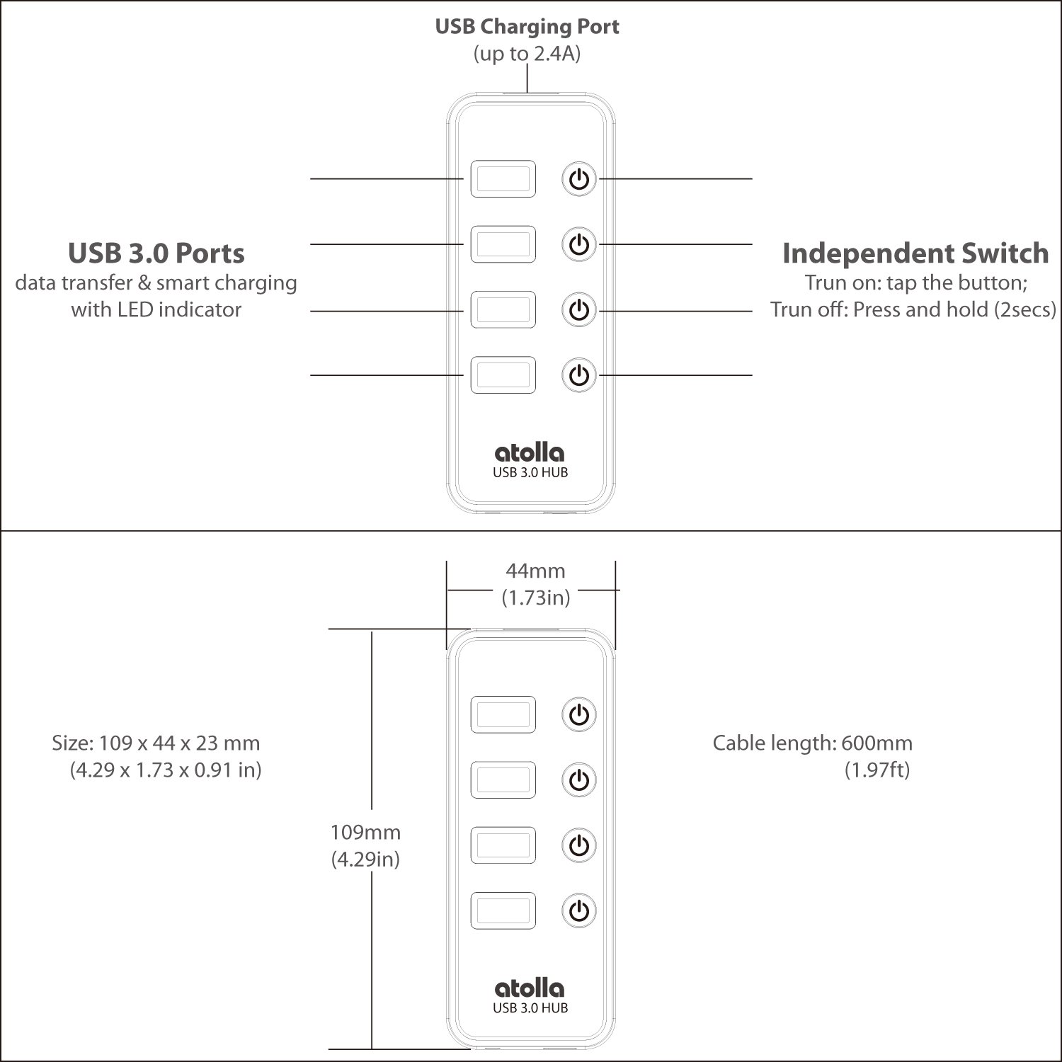 Can be expanded to 4 ports by connecting to the USB 3.0 port!
