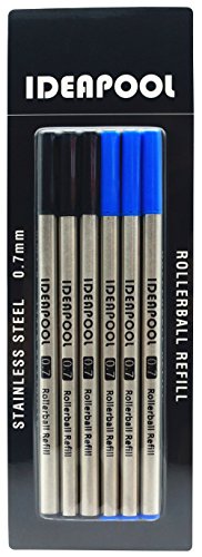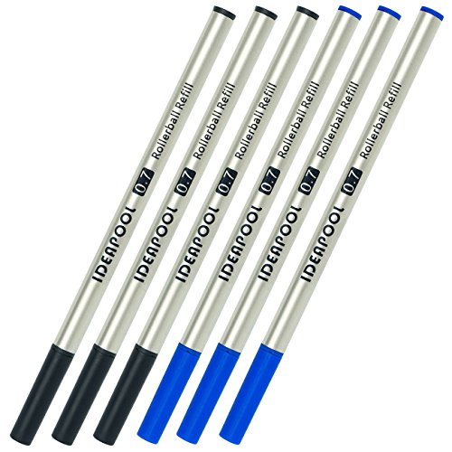 IDEAPOOL Replaceable Rollerball Ink Refills Specially for Rosewood and Bamboo Ballpoint Pens, Pack of 6 ( 3 Black / 3 Blue )