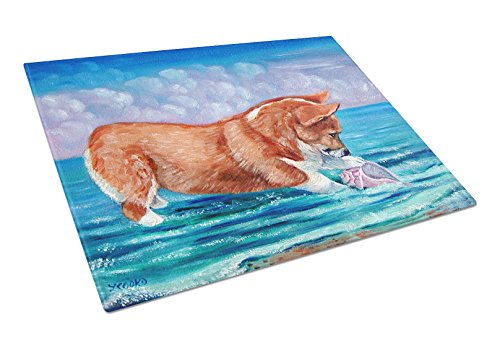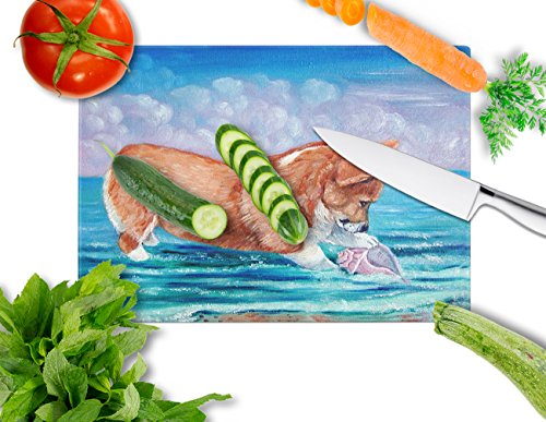 Caroline's Treasures 7407LCB "Corgi Sea Shell Find" Glass Cutting Board, Large, Multicolor