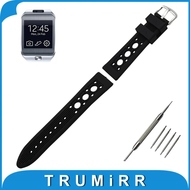 22 미리메터 실리콘 고무 시계 밴드 samsung gear 2 r380/R381/R382 스테인레스 당나라 버클 스트랩 손목 벨트 팔찌 + 도구