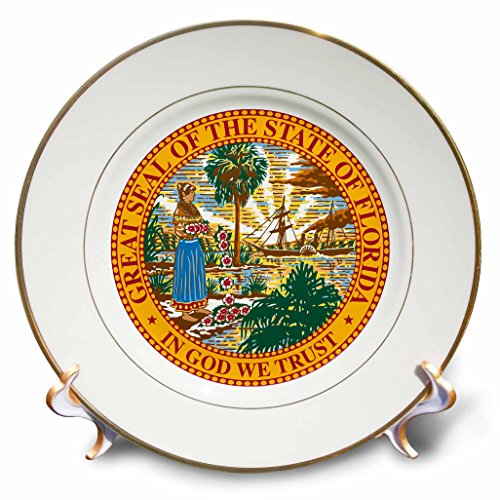 3dRose cp_55396_1 Great Seal of Florida PD-US Porcelain Plate, 8-Inch