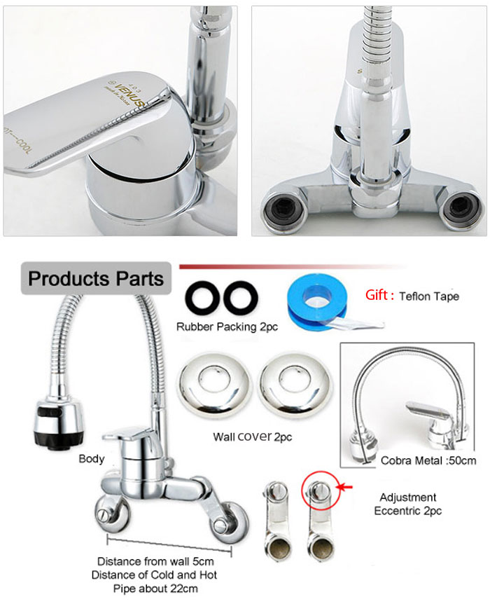 The distance between cold and hot pipes center is 150mm ,the adjustable size of it is 50-220mm