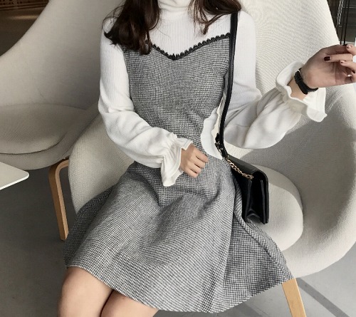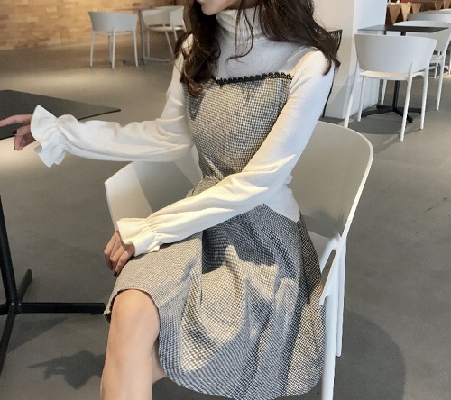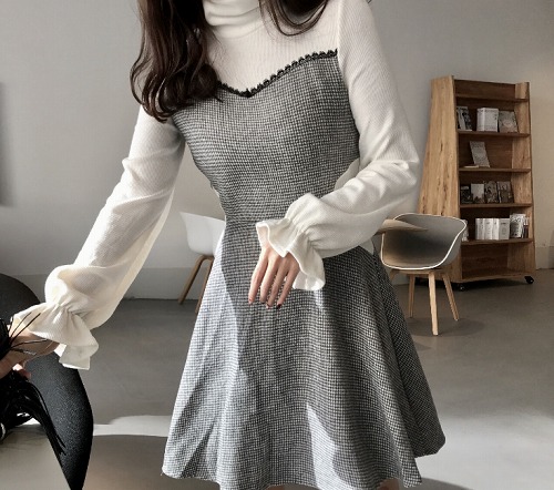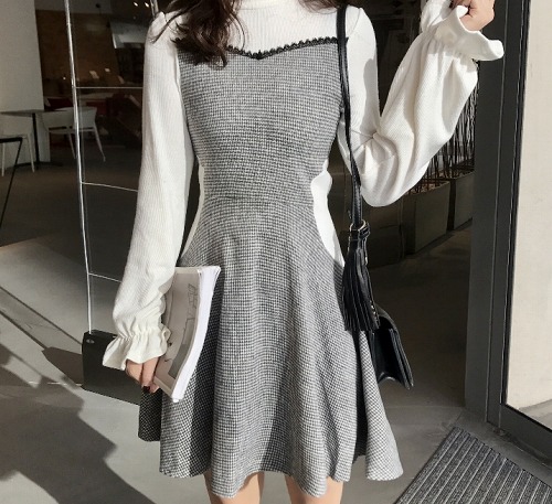 【M】 スカートの丈約86 バスト約86 肩幅約35 袖丈約62
