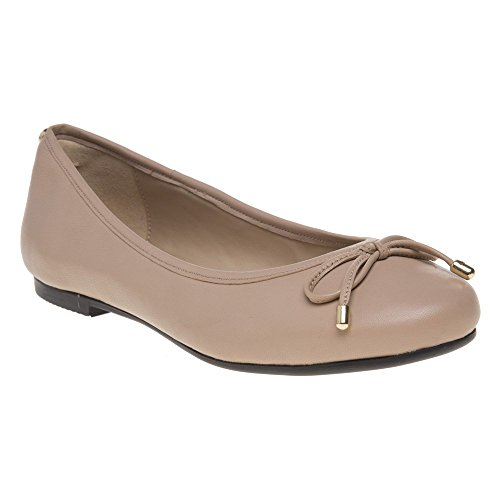 Product DescriptionNew from DKNY are these premium nude leather ladies ballet pumps. Leather lined with gold branding details on the bow.0