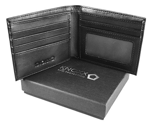 -. Binding : Apparel -. Brand : KNOXX Wallets -. Department : mens -. Feature : RFID blocking technology secures your information stored in credit card, debit card, and ID RFID chips. / Blocks 13.5 MHz RFID credit card chip signals. / 7card slots, 2 currency pockets, ID window. / Bifold wallet measures 3.5 in tall, 4.5 in long, and .50 in thick. / Genuine Leather. Gift box included -. PackageQuantity : 1 -. ProductGroup : Apparel -. ProductTypeName : ACCESSORY -. Size : One Size -. Title : KNOXX Wallets - RFID Secure Bifold, Transparent ID Holder, 2 Currency Slots, Leather, Gift Box Included