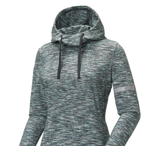투톤 멜란지 폴리 빽기모 싱글 소재를 사용한 여성용 후드 티셔츠한겨울에도 가볍고 따뜻하게 착용할 수 있는 제품후디드 스타일로 캐우얼하게 연출이 가능하며, 일상 생활에서도 입을 수 있는 실용적인 제품