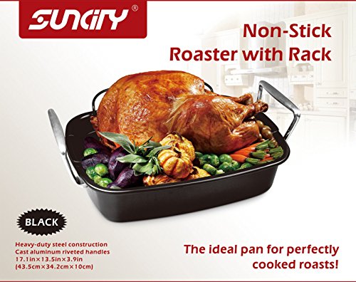 - Title : SunCity Non-stick Roaster with Rack, Black