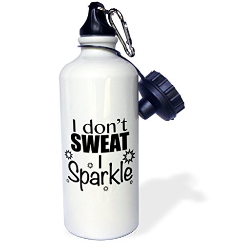 3dRose wb_171952_1 I Don't Sweat I Sparkle, Black Sports Water Bottle, 21 oz, White