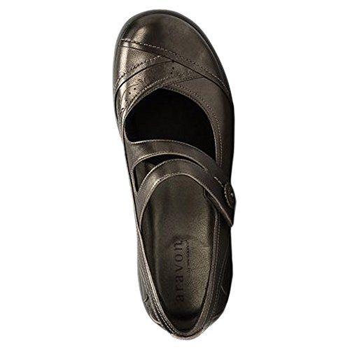Studio : Aravon Publisher : Aravon Binding : Apparel Product Description Enjoy a plush, supported ride in the Aravon REVshow mary jane, a European-inspired walking shoe that's perfect for travel or around-town wear. This women's casual flat is made from premium burnished leather and subtly accented with perforations and stitching details; an adjustable instep strap with hook-and-loop closure and metallic embellishment ensures the perfect fit. Removable to accommodate orthotics, the insole features both PrimaluxTM and ABZORB cushioning, and includes metatarsal and arch support to energize your stride; a lightweight REVlite foam midsole keeps a spring in your step. The Aravon REVshow walking sneaker is finished with a rocker-bottom rubber sole to deliver you to your destination in stable design. 0