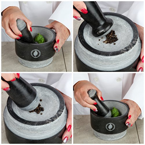 - EASY TO USE kitchen tool that grinds and crushes spices, herbs, salt, coffee beans and even pills and creates dishes like guacamole, curry, pastes, dips, dressings, seasonings and more.