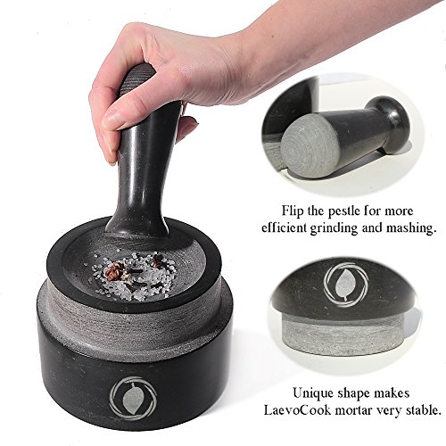 - REVERSIBLE Laevo Cook mortar and pestle - THE ONLY ON A MARKET. It allows to use both sides to separate the flavors and smells. You will love it for the unique design, convenience and durability!