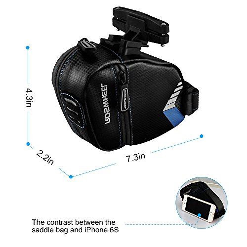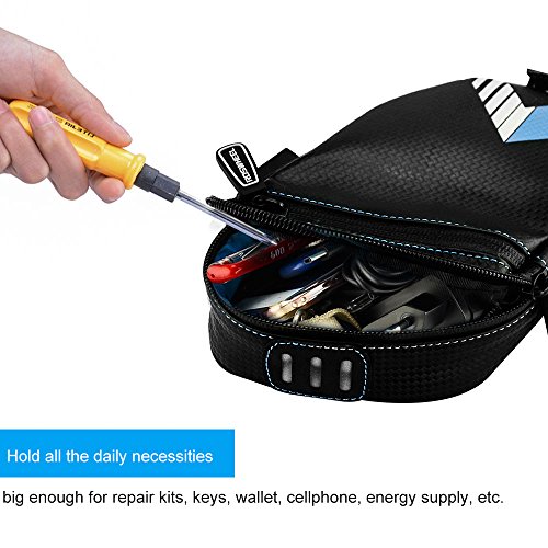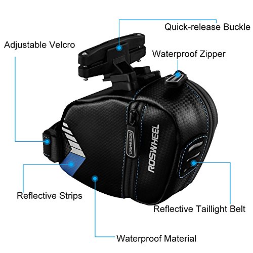 More Features: ☛ The zippered opening gives you an easy access with your belongings. ☛ The adjustable velcro and buckle design, suitable for all kinds of bicycles. ☛ Made of waterproof material and zipper keep your belongings dry even at rainy days. ☛ The high-quality leather material sheds water. Wipe out easily, no need to clean specially. ☛ The reflective strips and the light belt increase nighttime visibility,keep your night ridding more safe. Specifications: ☛ Type: Saddle / Seat bag ☛ Weight: 38g ☛ Capacity: 0.7L ☛ Dimensions:7.3" x 4.3" x 2.4" (18.5 x 11x 6 cm) ☛ Installation: buckle and velcro strip Package includes: ☛ 1 x Bicycle Saddle Bag The item has been well tested, examined and packaged by Welltop before sending off. If there is any problem, welcome to contact us, we would provide the best service for you.Feature