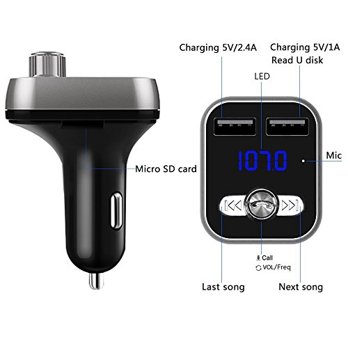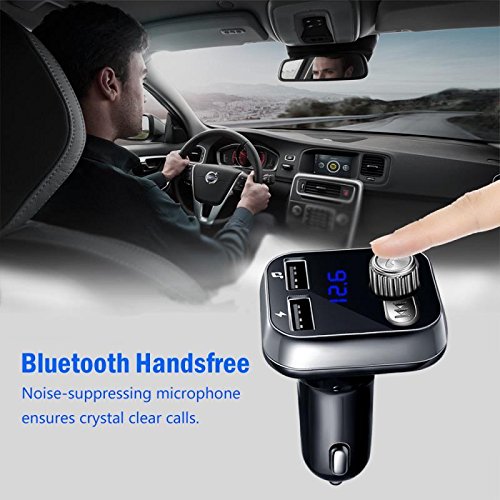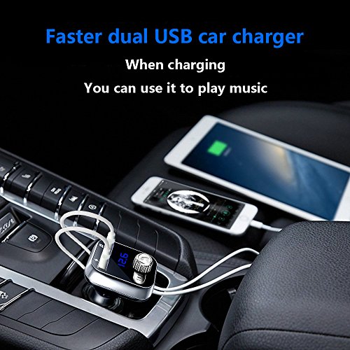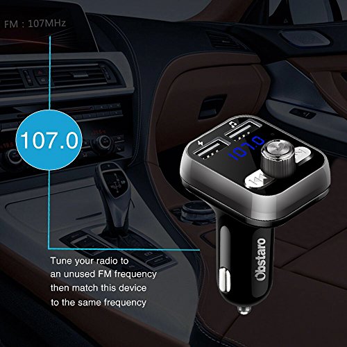 OBSTARO Bluetooth Handsfree Car Charger,FM Transmitter&Music adapter,MP3 player car kit , total 3.4A Dual USB Port Operations: