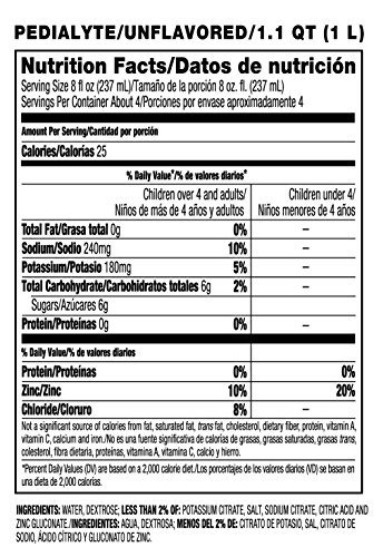 Pedialyte Electrolyte Solution, Unflavored, Electrolyte Drink, Liquid, 1-L (Pack of 8)