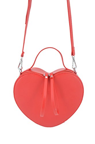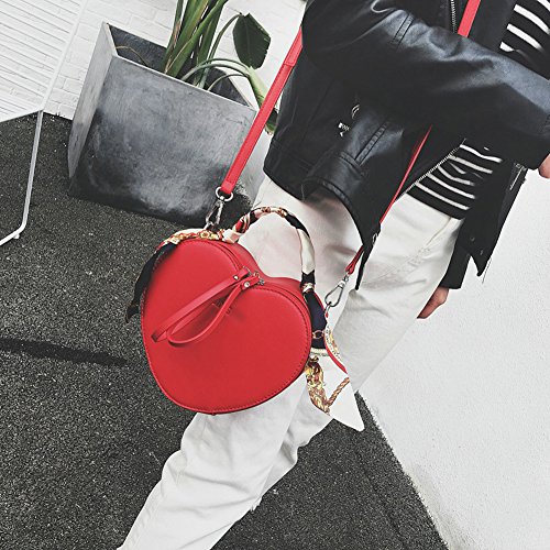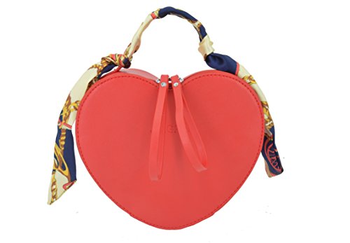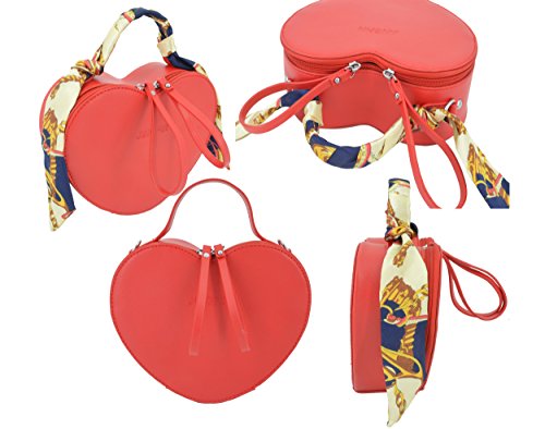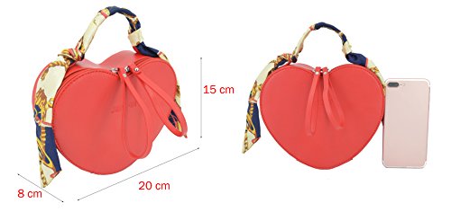 OURSART Women's Fashion Heart-Shaped PU Leather Handbag Crossbody Shoulder Bag with Silk Ribbon