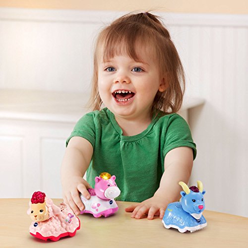Go on an adventure with this online exclusive Go! Go! Smart Animals bundle pack! Press the light-up button on each animal to activate music, sounds and phrases. Learn about the animals, letters and more through pretend play. Kids can pretend to go on an adventure with Helen the horse, Shelly the sheep and Gloria the goat included in this Go! Go! Smart Animals 3-pack. Perfectly sized for little hands, these electronic animals entertain children with a light-up button that activates music, sounds and phrases. Through pretend play, they'll learn about the animals, letters and more. Each animal also responds with music, sounds and phrases to SmartPoint locations on Go! Go! Smart Animals and Go! Go! Smart Wheels playsets (each sold separately). Requires a total of 6 AAA batteries (2 for each animal) which are included for demo purposes, use new batteries for regular use. Intended for ages 1 to 5 years.Feature