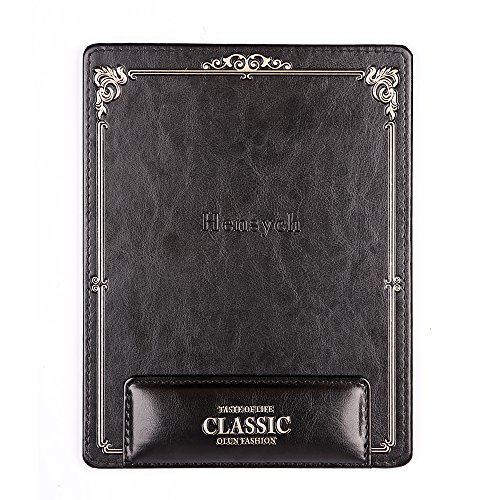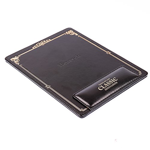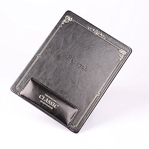 Hooshion Rectangle Mouse Mat with Comfort Wrist Rest Hand Pillow Leather Mouse Pad Black, Office Desk Accessory and Gift for Family and Friends (Black)