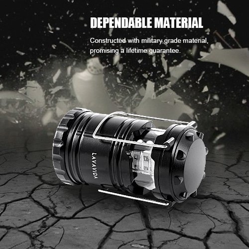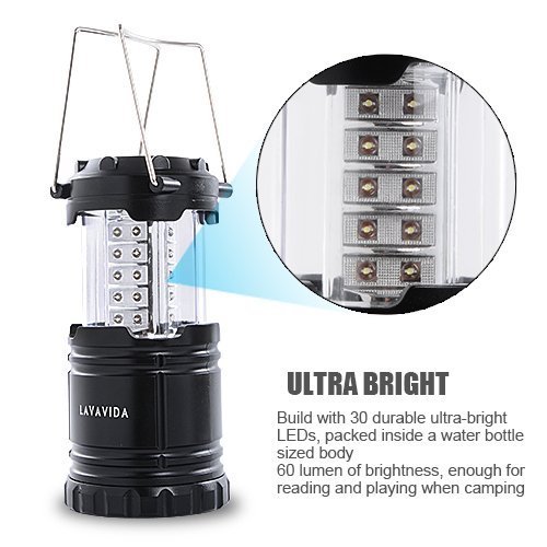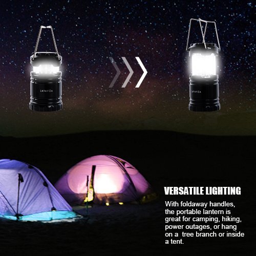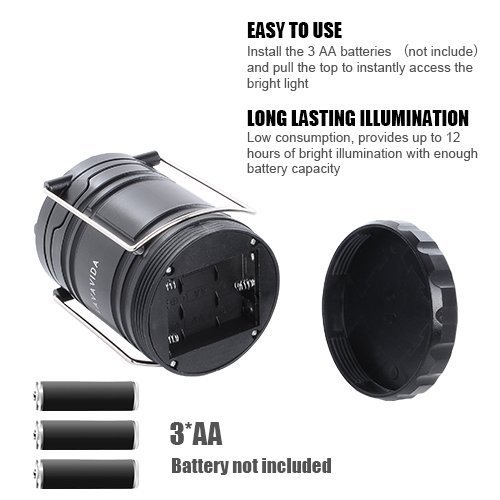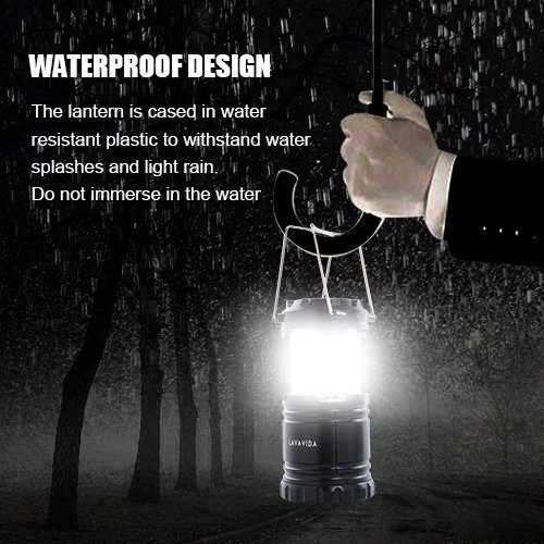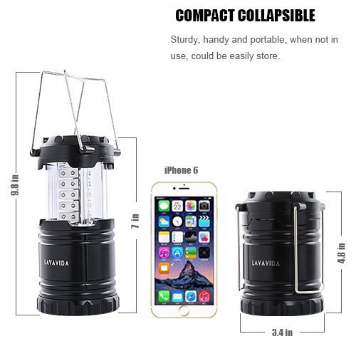 LAVAVIDA LED Camping Lantern - 2 Pack Safety Lamp Light for Emergency, Hiking, Fishing, Blackouts, Hurricanes, Storms - Portable, Collapsible, Water Resistant - Ultra Bright Flashlight - Black