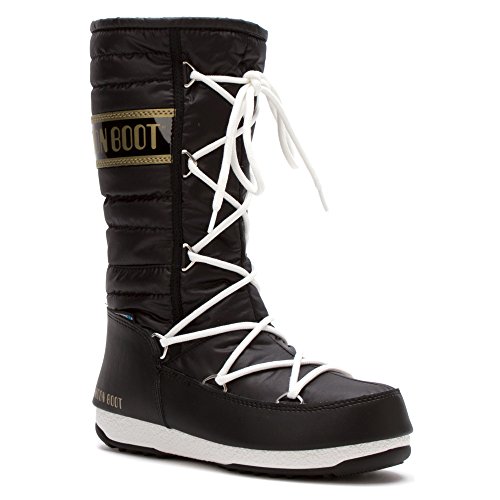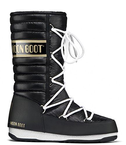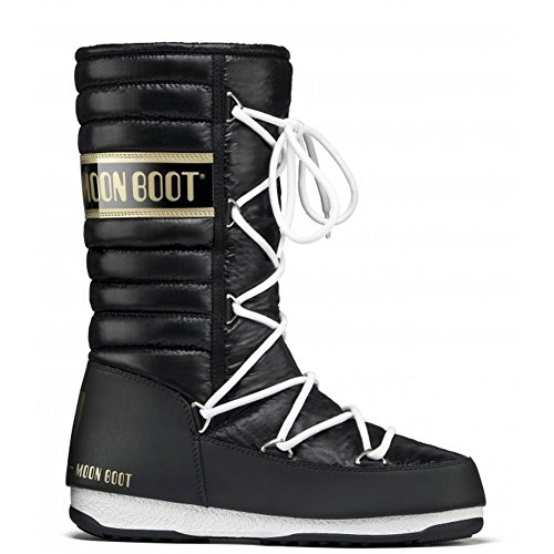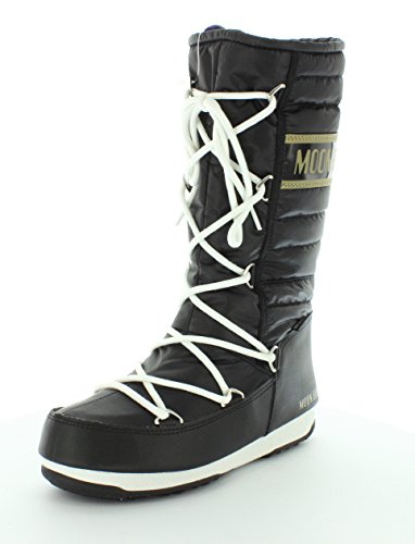 Studio : Tecnica Publisher : Tecnica Binding : Shoes Product Description Give your design an out-of-this-world vibe in the Tecnica Moon Boot W.E. Quilted winter boot. Featuring an upper of waterproof nylon, this women's cold-weather boot is accented with ribbing around the back and sides of the boot shaft for a touch of chic sophistication. The ghillie lacing system creates a snug fit, while the cushioned footbed lends support. The durable rubber sole gives the Tecnica Moon Boot W.E. Quilted winter boot secure traction to keep your feet firmly planted on terra firma. 0