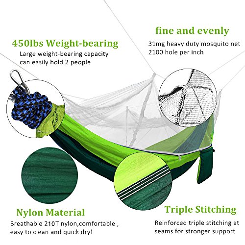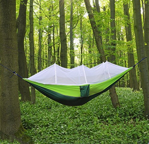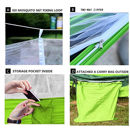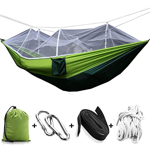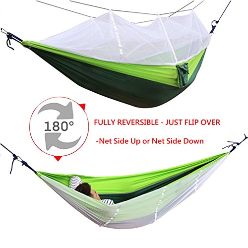 Hammock with Mosquito Net- Lightweight Nylon Portable Hammock with Tree Straps & Carabiners, Best Parachute Hammock for Bug Free Hiking,Backpacking, Camping, Travel, Beach, Yard.