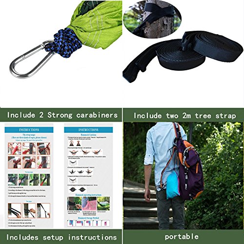 COMPACT AND PORATBLE - 1 Nylon double hammock,2 mosquito net Rope, 2 tree friendly Straps, 2 steel Carabiners and a Instruction Manual all fit neatly into the pocket stuff sack so you can take and set up anywhere you go!Ideal for camping,hiking,backing,lounging and overnights.No more struggling to pack bulky sleeping bags and tents-just stuff your hammock in the included small sack,pack in your backpack and head off!