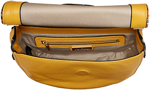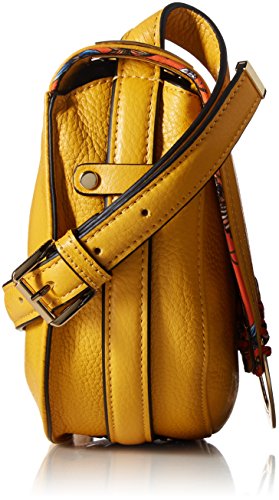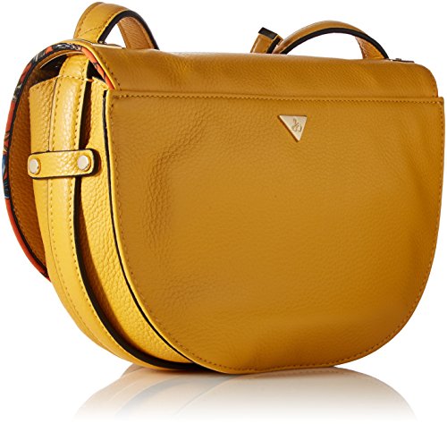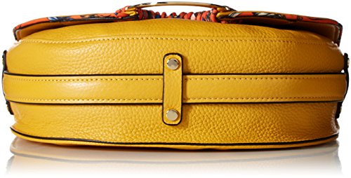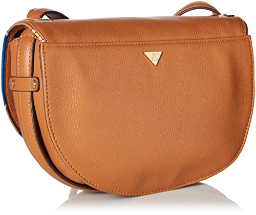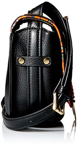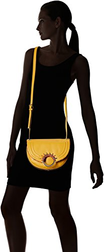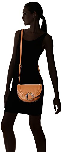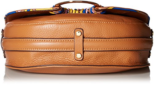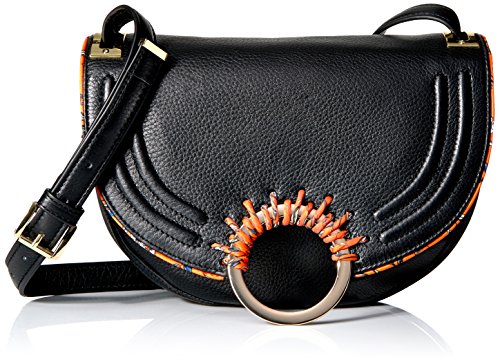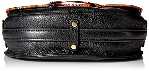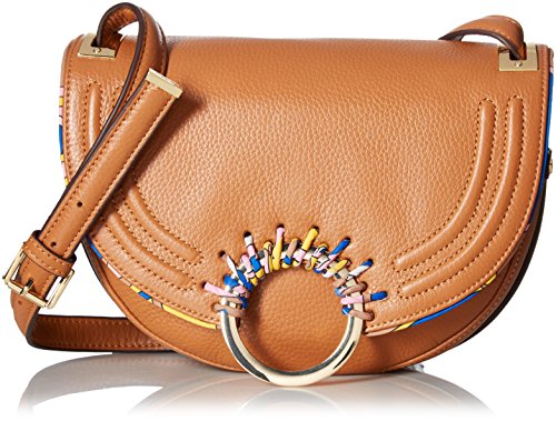 Product DescriptionRio half Moon saddle bag, exterior flap features scarf trim, scarf lacing detail around a distinctive piece of circular hardware, adjustable cross body strap0