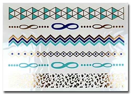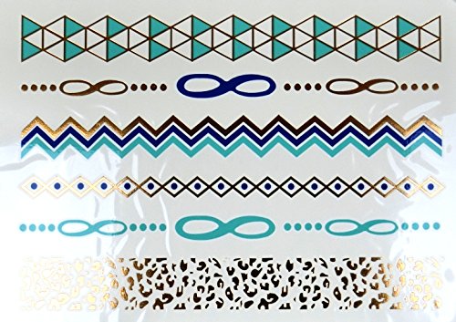 Akjo Group E Design 34-41 [No.34] Temporary Metallic/Gold Tattoo, Silver/Turquoise Green