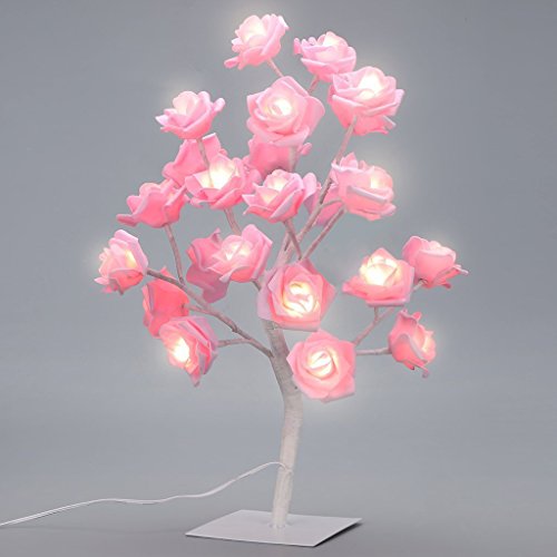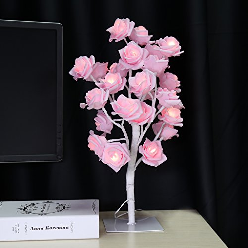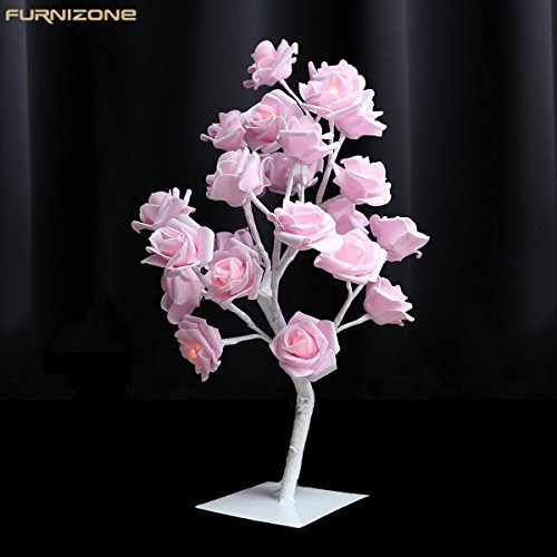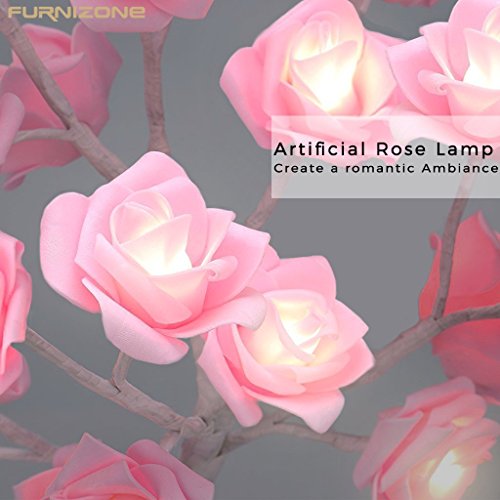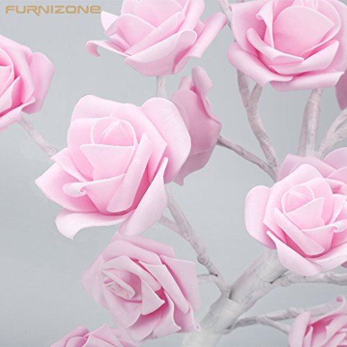 Pretty and romantic: The way you light a room will completely change the space. Furnizone rose tree table lamp is effective in transforming feelings, putting you in moods from relaxed to energetic to romantic. This pink lamp featuring a white base, trunk and branches with 24 lifelike pink roses, it gives off warm white glow through the delicate rose petals, adding a touch of romance and sophistication.