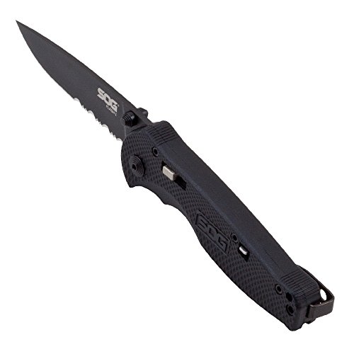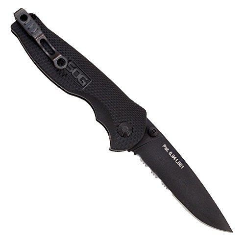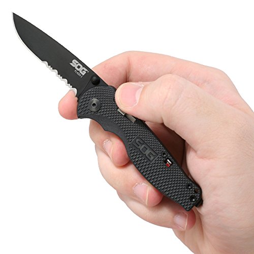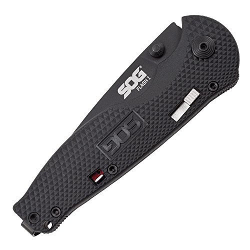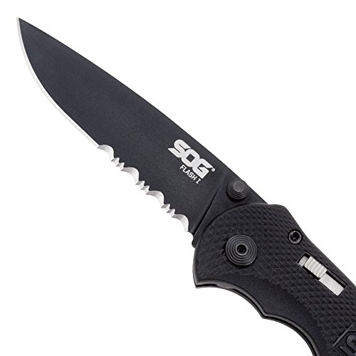 SOG Specialty Knives & Tools TFSA97-CP Flash I Knife with Part-Serrated Folding 2.5-Inch AUS-8 Steel Blade and GRN Handle, Hardcase Black TiNi Finish