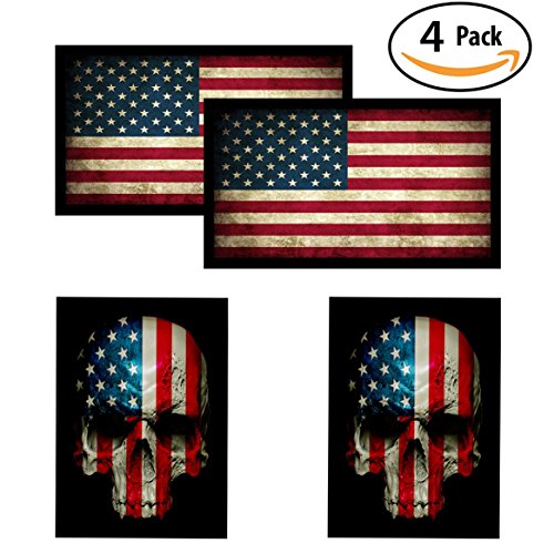 American Flag & Skull Flag HardHat & Helmet Stickers: 4 Decal Value Pack. Great for Motorcycle Biker Helmet, Construction Toolbox, Hard hat, Mechanic Shop & More. Great Gift for Any Patriot. USA Made