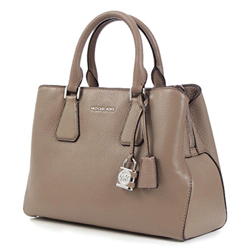 -. Feature : 100% Cow Leather; Silver tone hardware / Double handles with 4-1/2" drop; adjustable strap with 22-1/2"-24-1/2" drop / Triple compartment design with center zip compartment and 2 magnetic snap compartments / Exterior features silver-tone hardware; Interior features 1 zip pocket, 3 open pockets, 1 cellphone pocket and key fob / Measures 11-1/4" W x 8-3/4" H x 4-3/4" D