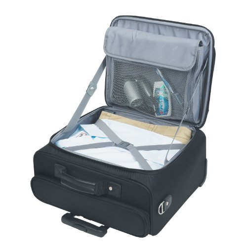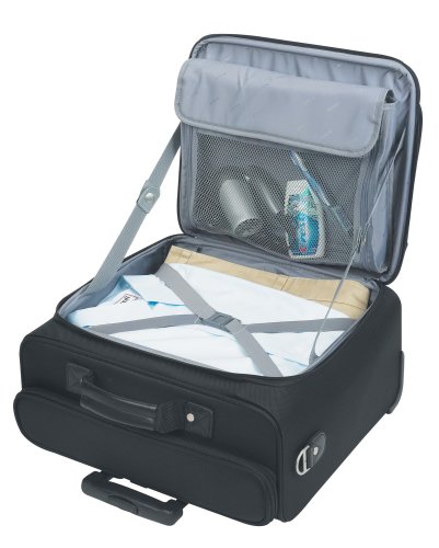 - Feature : Versatile dual-access laptop sleeve allows for removal of laptop from zippered top-load or from main compartment. Holds most 15.6" laptops. / Additional compartment allows for secure transport of clothing for overnight trips. / Zip-down overnighter section and full-length mesh accessory pocket. / Telescoping handle system.