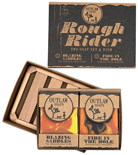 It's a boxed set of Outlaw Soaps, with a fine wood soap dish! Could only be more awesome if... no, nevermind, there's nothing that could make this more awesome.